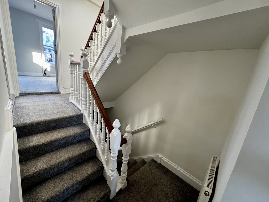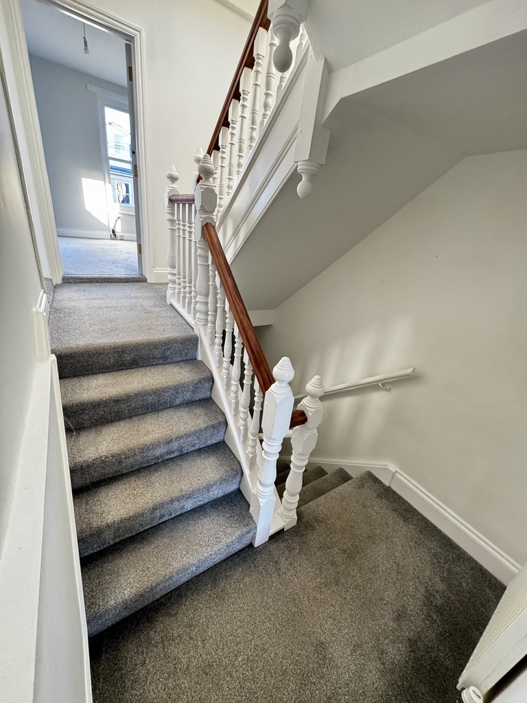 Stairs to 1st floor - Kitchen, bathroom with separate WC, very large lounge/diner, bedroom 1.