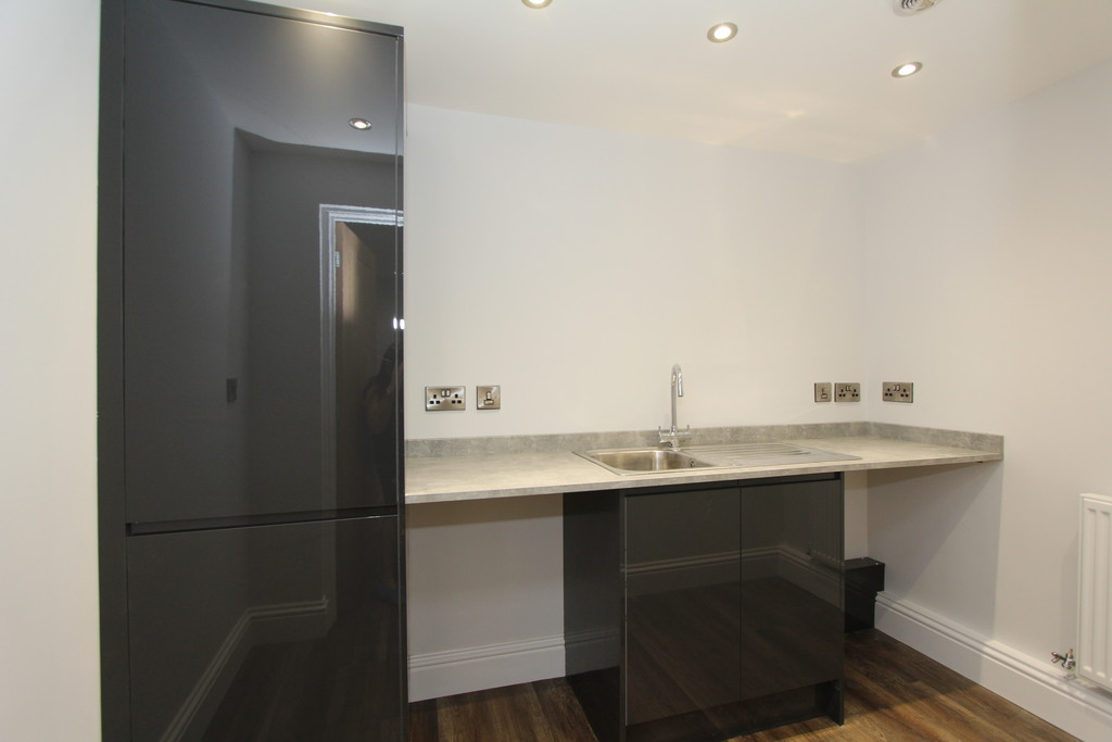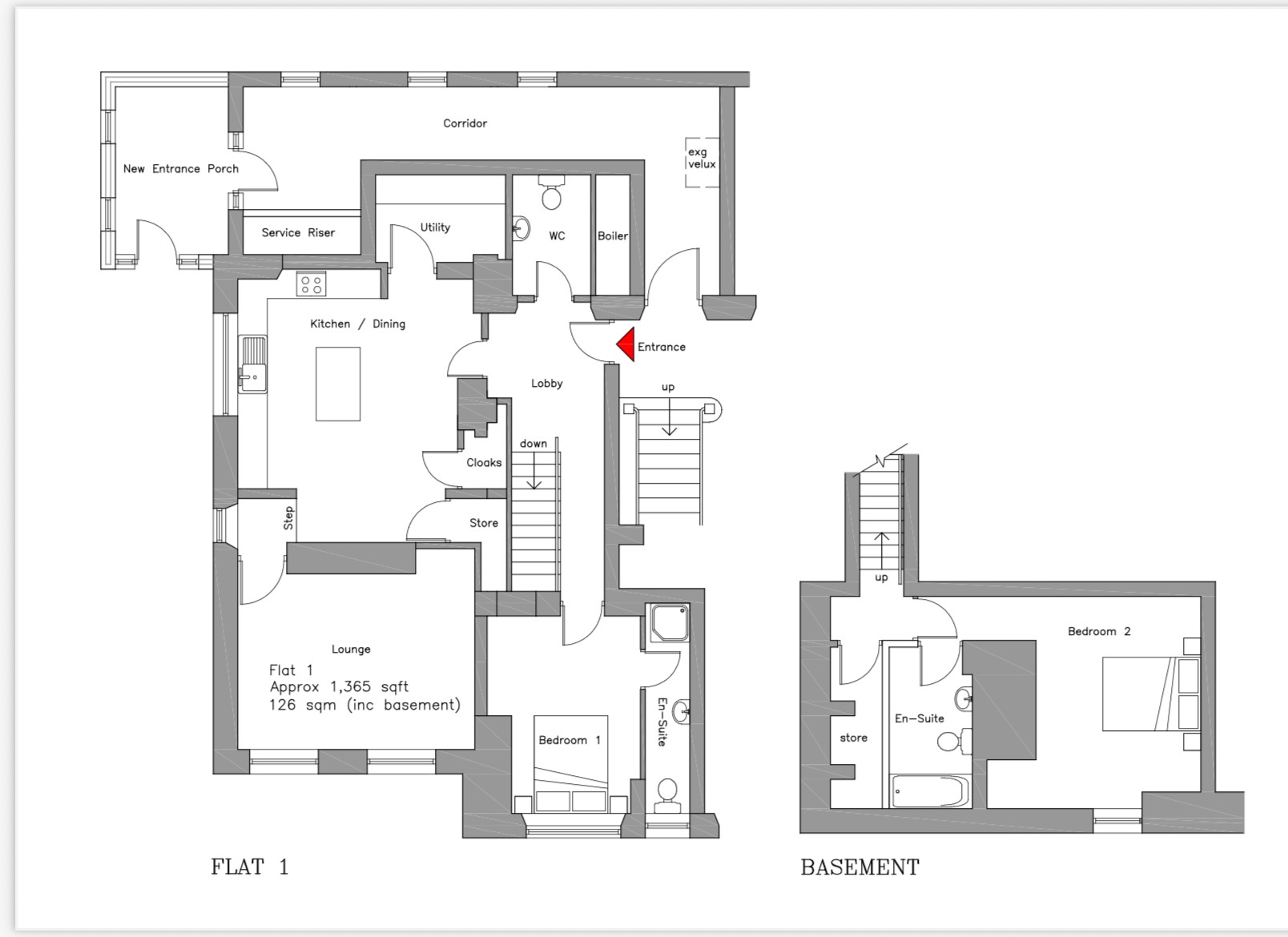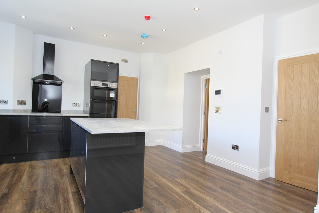Accessed from the impressive hallway and situated on the ground floor Apartment 1 measures an impressive 1,365 Sq ft. The beautifully presented apartment comprises its own private lobby which includes a guest W.C and cloakroom cupboard. A newly fitted kitchen with large island has a range of gloss graphite wall & base units which offers plenty of storage space with an integrated dishwasher and a fantastic American style fridge freezer. The double electric oven and gas hob with black splash back and overhead extractor hood complements the decor perfectly. Under cupboard and ceiling spot lights add to the ambiance and a large UPVC window provides an abundance of natural light. Wooden flooring compliments the decor. The kitchen also benefits from having a separate utility room with worktop and sink, tall storage cupboard and washing machine. There is also space for a tumble dryer.