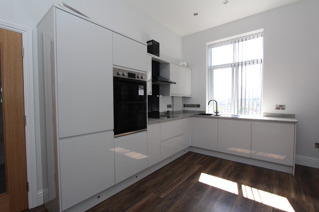 The beautifully presented apartment comprises entrance hall which includes guest WC. Leading from the hallway is the open plan lounge, kitchen/diner. The modern fitted kitchen in gloss dove grey which has an extensive range of wall & base units with plenty of storage space with an integrated dishwasher, fridge/freezer and washing machine. The double electric oven and gas hob with black splash back and overhead extractor hood complements the decor perfectly. Under cupboard and ceiling spot lights provide plenty of lighting with the bonus of 2 large UPVC windows providing an abundance of natural light. Complimenting wooden flooring throughout.