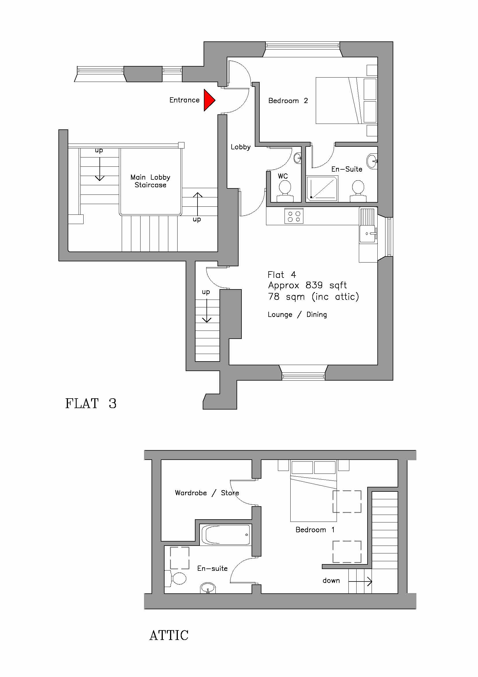 Accessed via the grand staircase and situated on the first floor Apartment 4 is an impressive 839 sq ft.