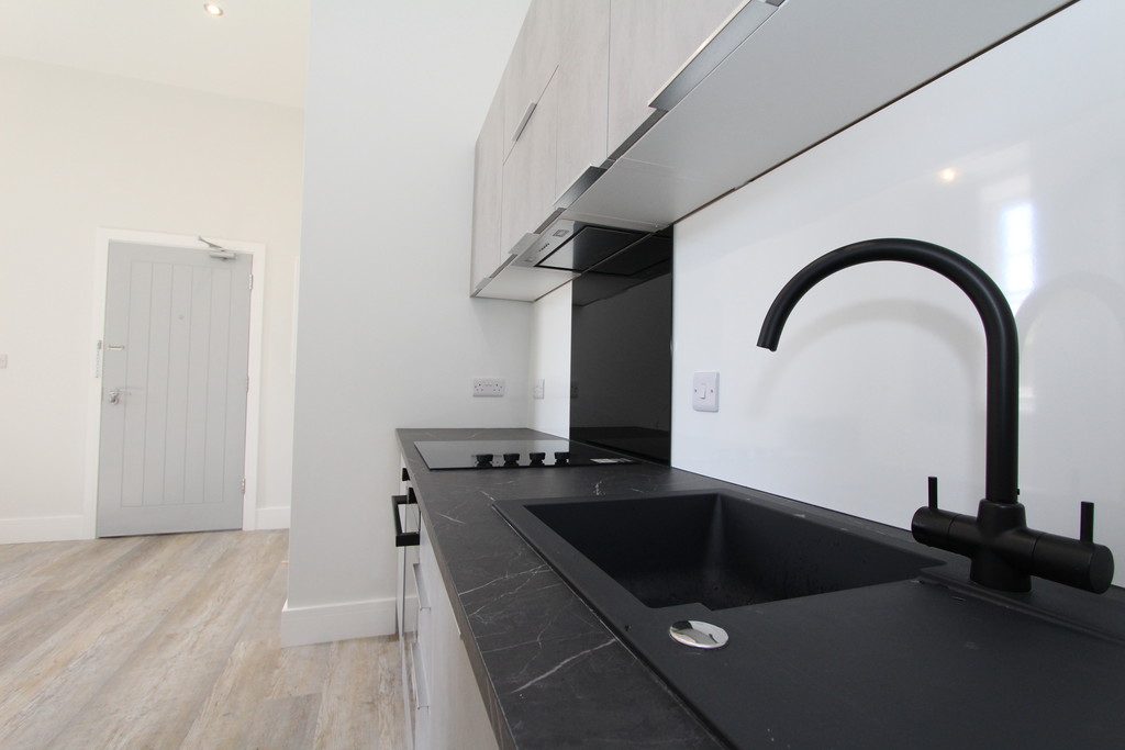 Apartment 1 is 31 sq.m in size and benefits from an open plan modern kitchen, diner and lounge. The kitchen is equipped with electric oven/hob, washing machine and fridge freezer. The bedroom has a built in wardrobe and the bathroom consists of corner shower, washbasin and wc. Modern electric heaters provide economical heating to the apartment. Luxury curtains fitted in bedroom and lounge frame the large impressive windows which flood the apartment with lots of natural light. The apartment is decorated in light greys which compliment the modern kitchen units and flooring in all rooms.